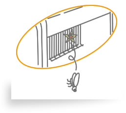 誘引された虫は高電圧により、あっという間に感電死してしまいます。高電圧は器種により、2700V~7000Vまでと強力ですが、二次短絡電流値は18~19mAであり、万が一高圧に触れても地絡による感電は発生しません。また数々の特許による安全装置を備えておりますので、安心してお使いいただけます。