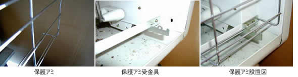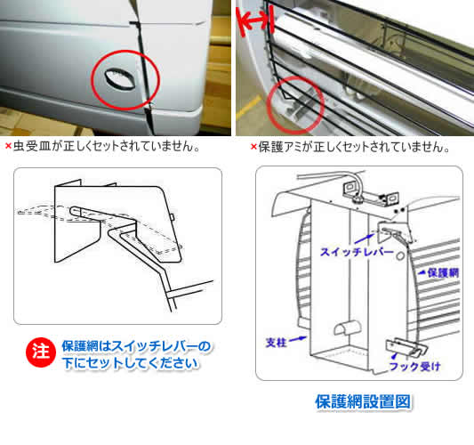 保護ガードも虫受トレイも正しくセットされた写真です。保護ガードが本体と同じく垂直にセットされ、虫受トレイも同じく水平に取り付けられております。