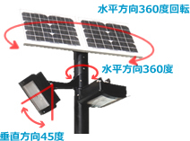 ソーラーパネルおよびLED灯具は360 度回転可能。